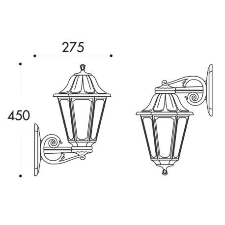Lampa murala hexagonala, in stil clasic, in executie antisoc si anticorozva, rezistenta la radiatii UV, cu soclu E27.